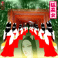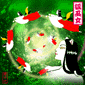 背景は実際に稲荷へ行って森を写真に撮り、それをコンピューターでグルグル回転させてみた。