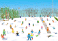 それぞれがカラフルなウエアを着ており、真っ白な雪にそれらが映えて、
