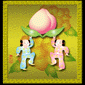 桃の実は魔除け、牡丹は華やかさの象徴で、